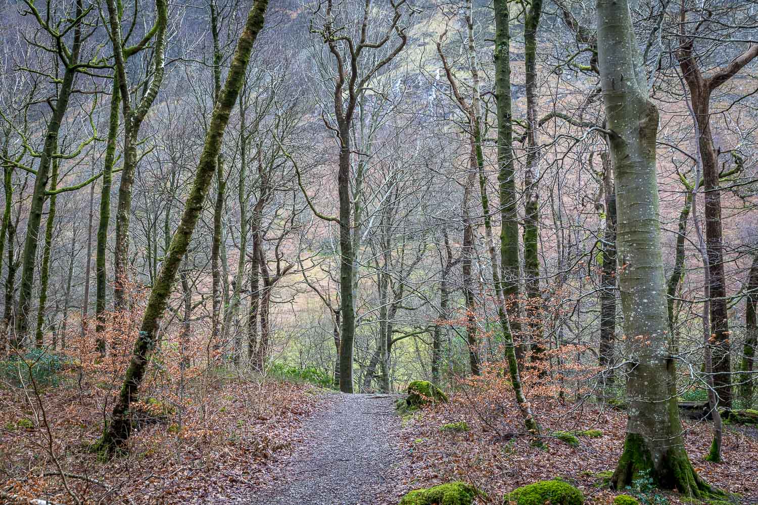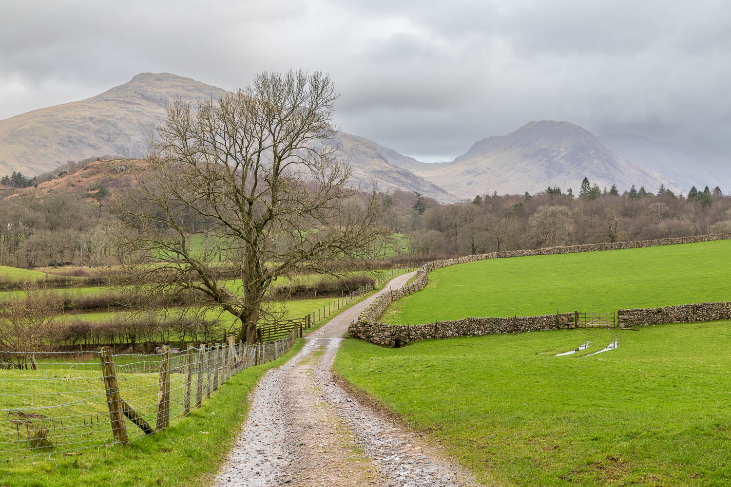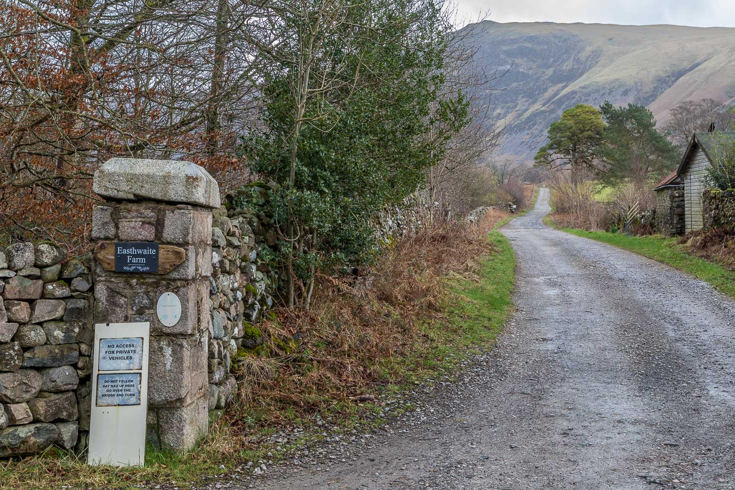 I continued along the lakeshore path and just beyond Wasdale Hall I climbed up to the road, which I followed for a short distance before turning off at High Birkhow. The track beside the wood, and through the open countryside at Ashness How, has been reduced to a deeply rutted quagmire by heavy farm vehicles, though much of the thick mud could be avoided by weaving from side to side of the track. It was a relief to turn off at Scale Bridge and to follow the very pleasant path back to the start of an enjoyable short walk, despite the rather uninspiring weather
